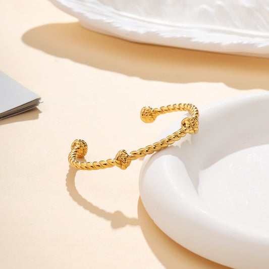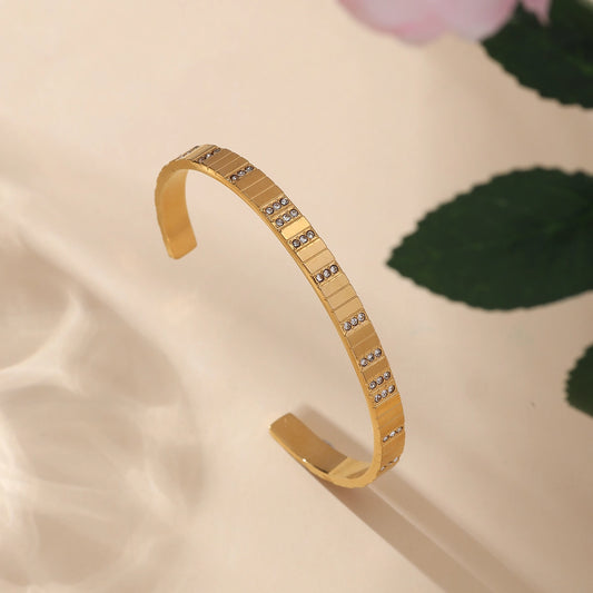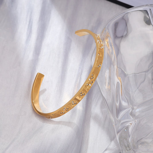 Crystal Cubic Zircon Stone Textured Cuff Bangle