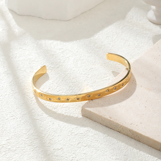 Star, Evil Eye and Geometric Zircon Cuff Bangle