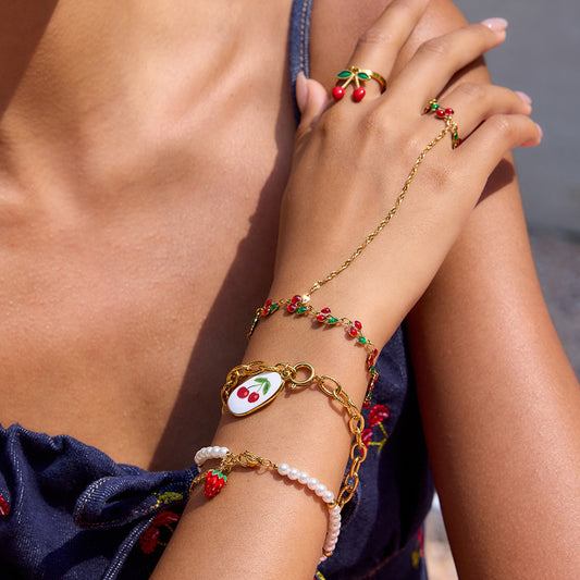 Cherry Ring Bracelet Hand Chain