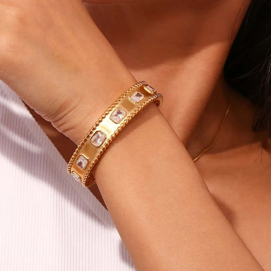 Quadrilateral Zircon Cuff Bracelet