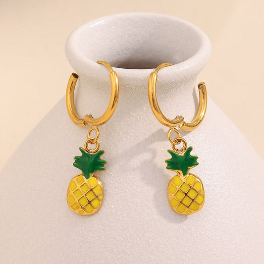 Enamel Pineapple Pendant Hoop Earrings