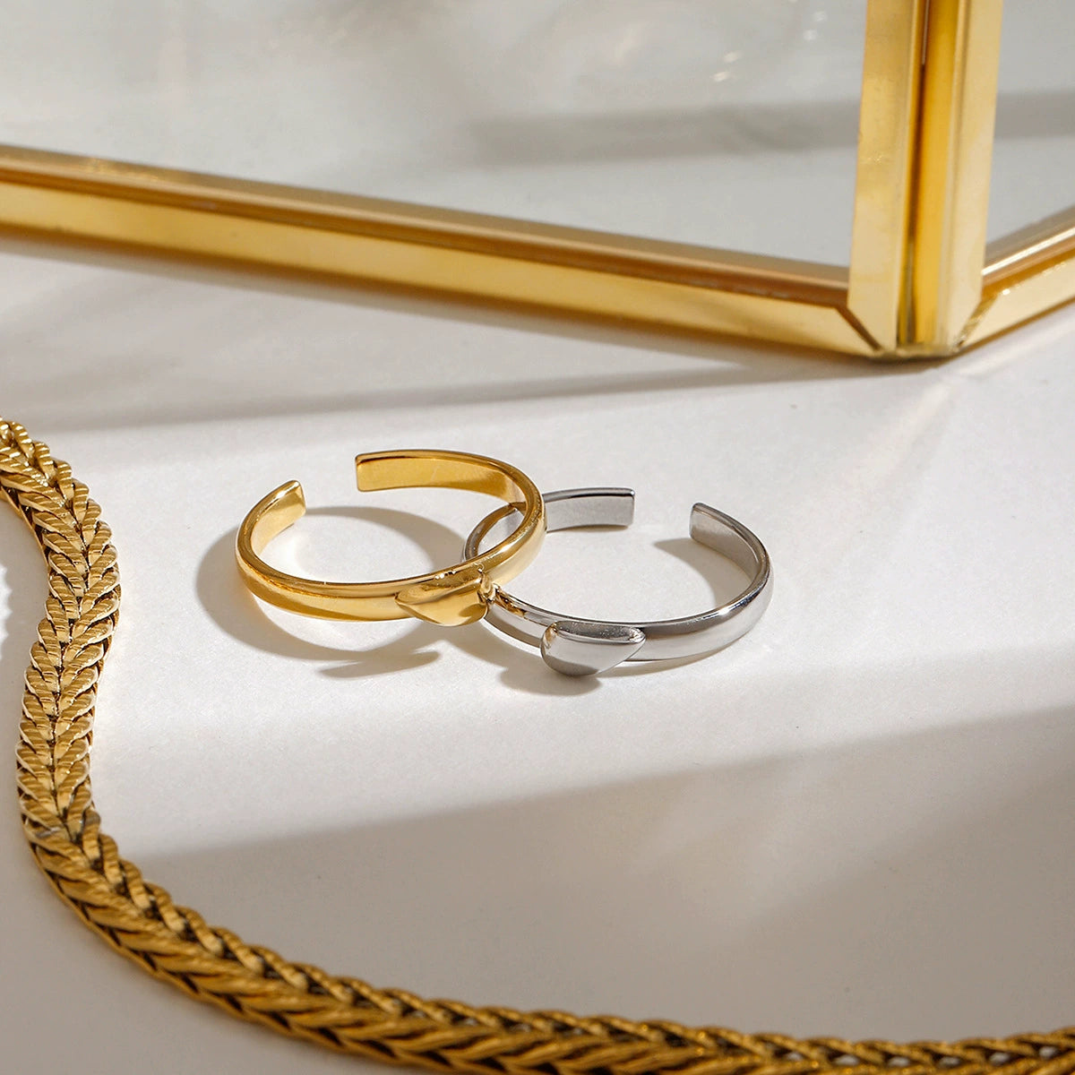 Stack the love with these waterproof open-ended heart rings! The two-tone gold and silver design offers modern versatility for mix-and-match styling. Tarnish-resistant and adjustable for a perfect fit.
