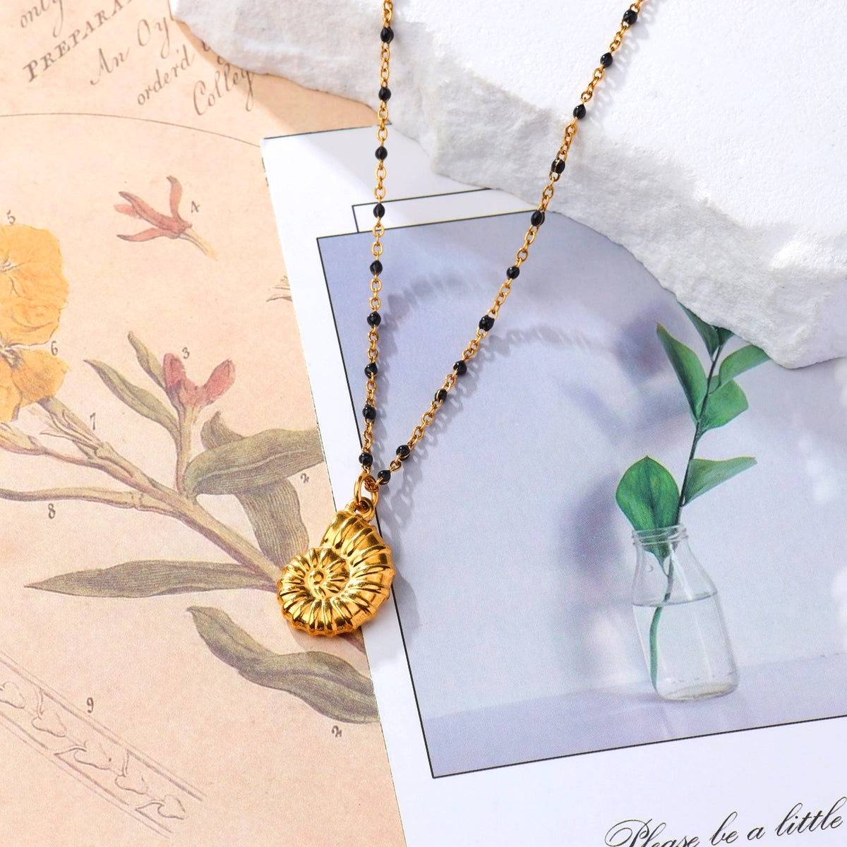 Dive into dark ocean elegance with this waterproof conch pendant necklace! The spiral shell rests on a sleek bead chain, creating dramatic depth for evening wear. Saltwater-proof and tarnish-resistant for moonlit beach events.
