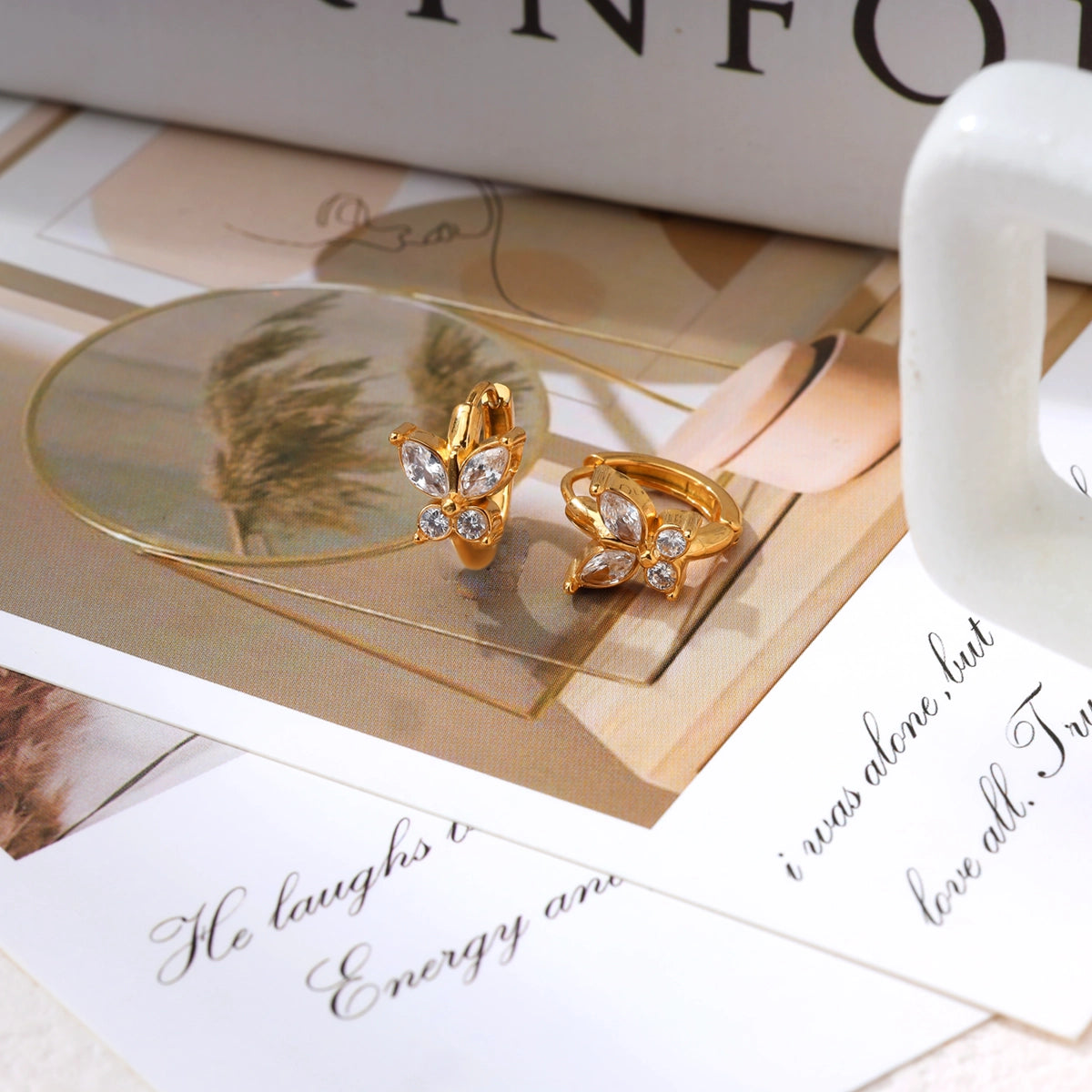Our mini butterfly diamond earrings capture delicate beauty with a brilliant sparkle. Expertly crafted and fully waterproof, they symbolize transformation and grace. Perfect for adding a touch of magical, worry-free elegance to any moment. Let your spirit take flight.