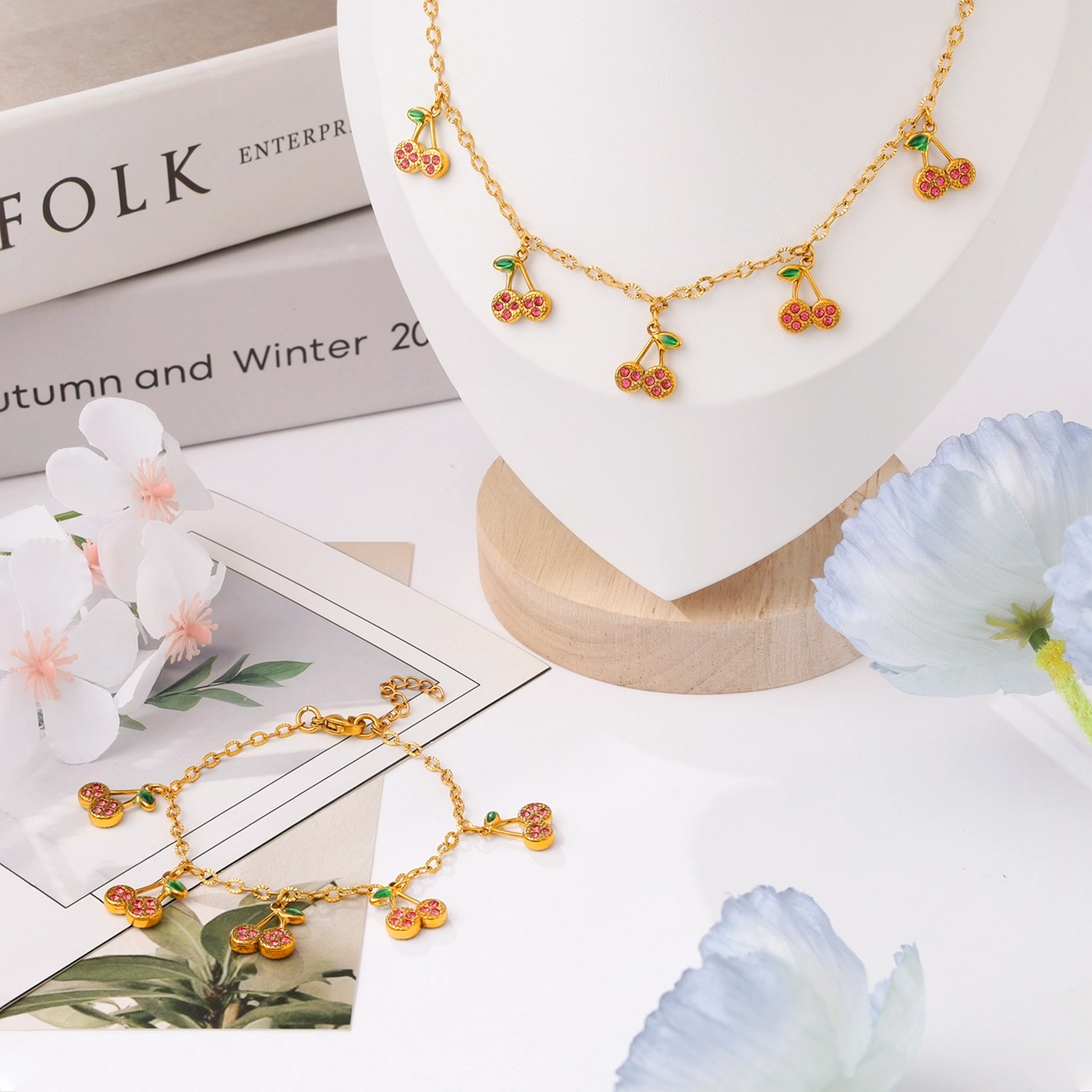 ๐Pink Zircon Cherry Charm Bracelet โ Blushing Sweetness