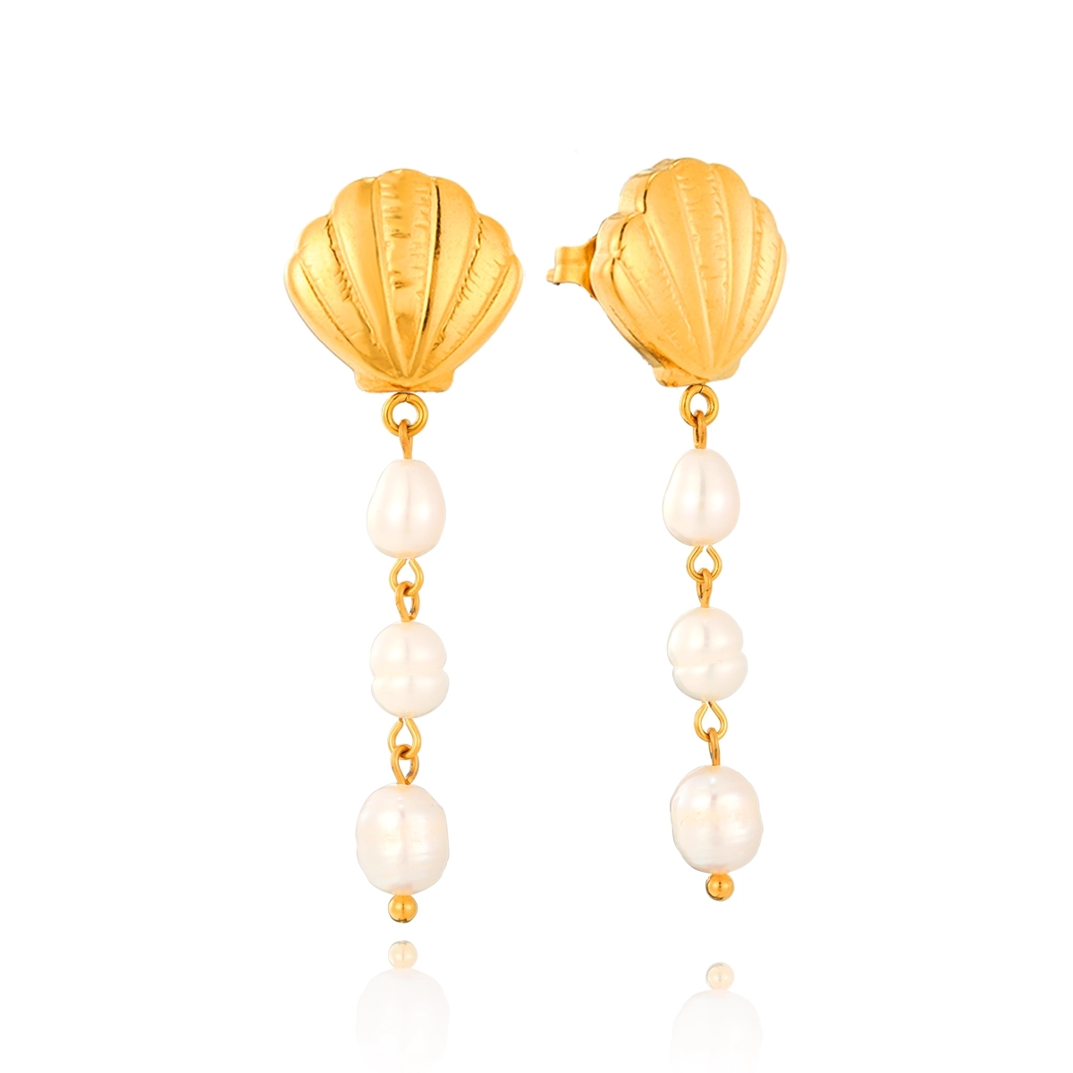 Channel coastal elegance with these waterproof earrings featuring lustrous pearls nestled in delicate gold-tone shells. Perfect for beach weddings or nautical-inspired styling, their saltwater-resistant design maintains brilliance through summer adventures. Hypoallergenic hooks ensure all-day comfort.