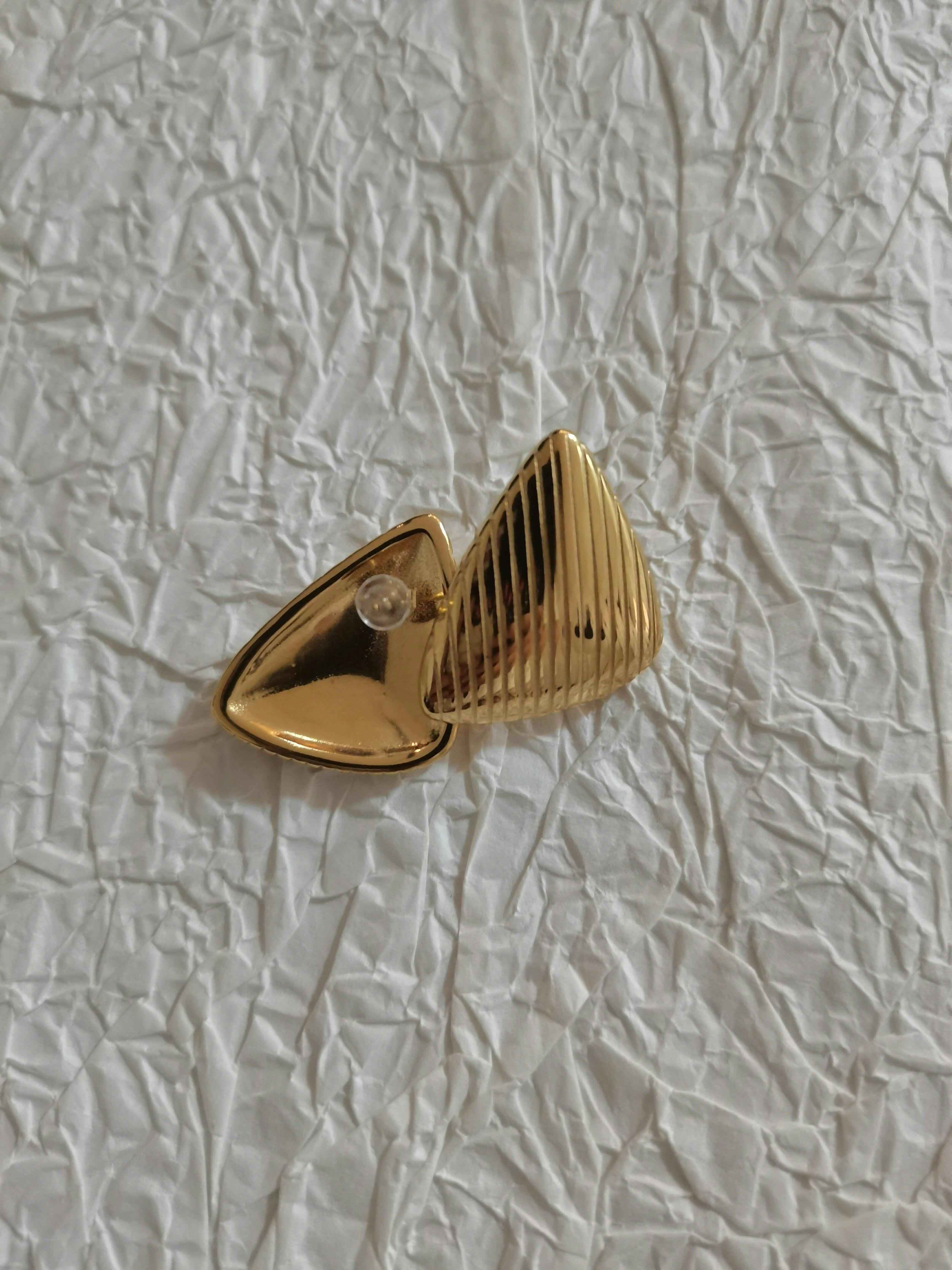 "Make a bold statement with our striped triangle stud earrings. These edgy and modern earrings are the perfect accessory to add a pop of personality to any outfit. Whether you're dressing up for a night out or adding an extra flair to your everyday look, these geometric studs will elevate your style game."