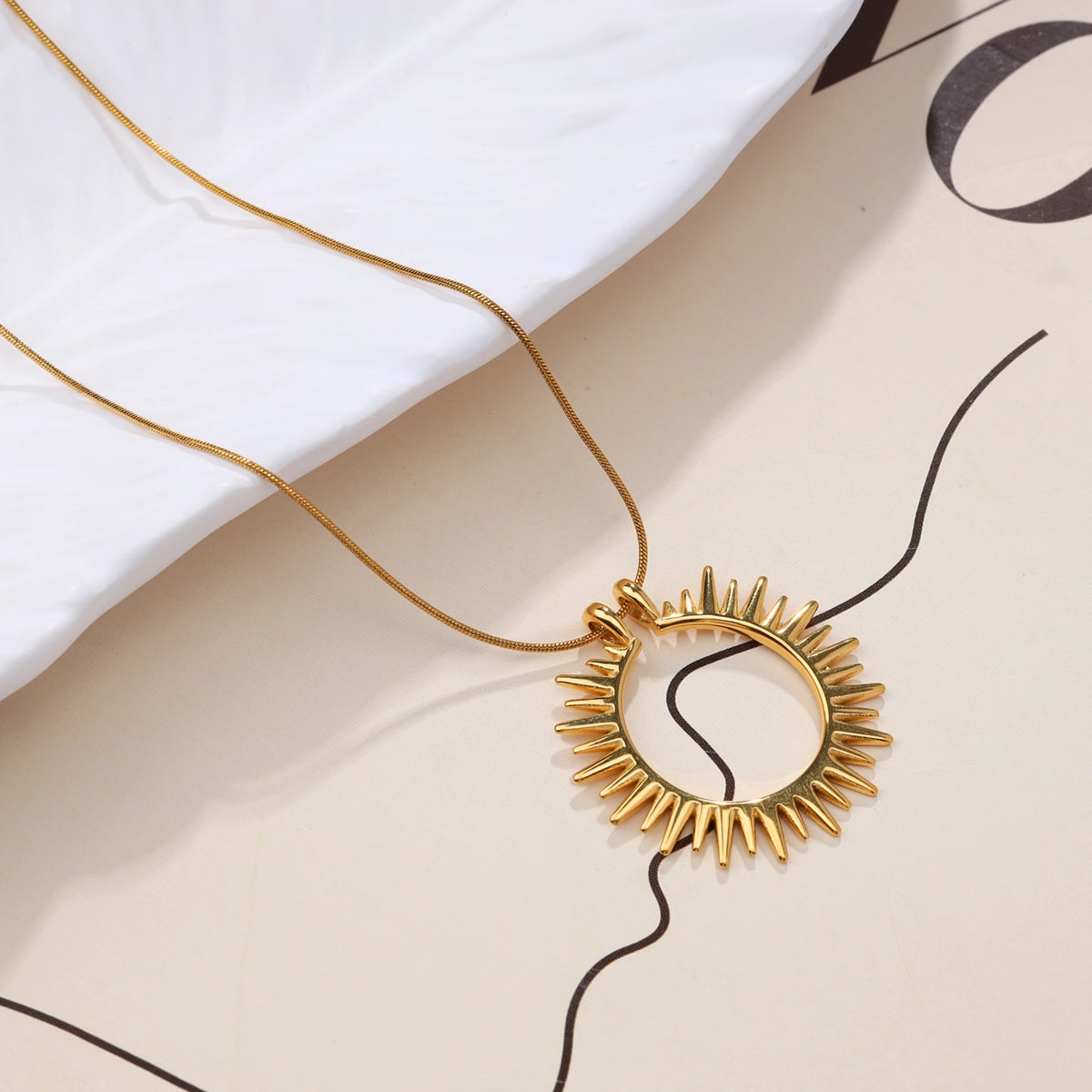 Radiate timeless elegance with our sun pendant necklace. This stunning piece captures the sun's brilliant energy with its detailed design and sparkling crystals. Crafted with a durable waterproof coating, it's perfect for daily wear, adding a touch of warm, luminous style to any outfit. A truly uplifting accessory.